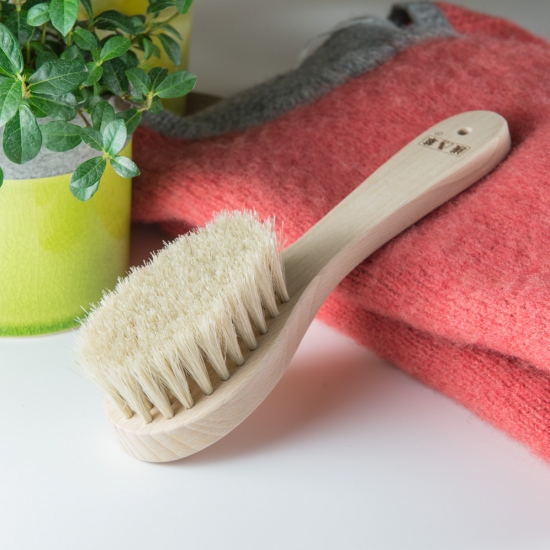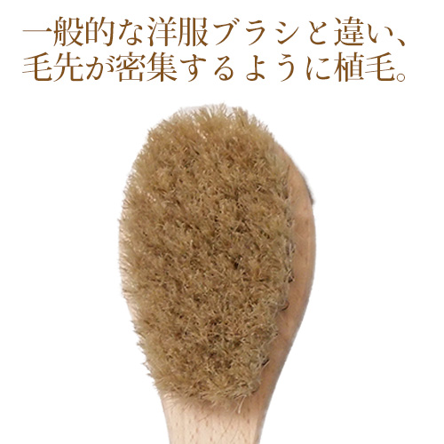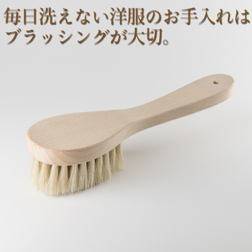 天然獣毛(馬毛・豚毛)のブラシは静電気が起こりにくいためデリケートな服地のブラッシングには適しています。特に馬毛はきめ細かく、均一な太さでコシがあり衣類のブラッシングには最適といわれています。