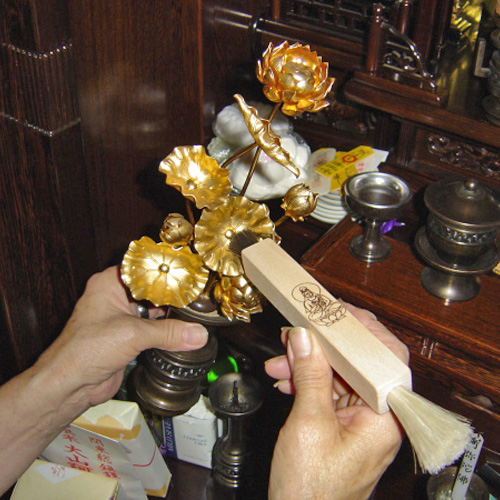 毛ばたきはお仏壇全体のほこりや、お位牌などのデリケートな装飾品のお手入れに。