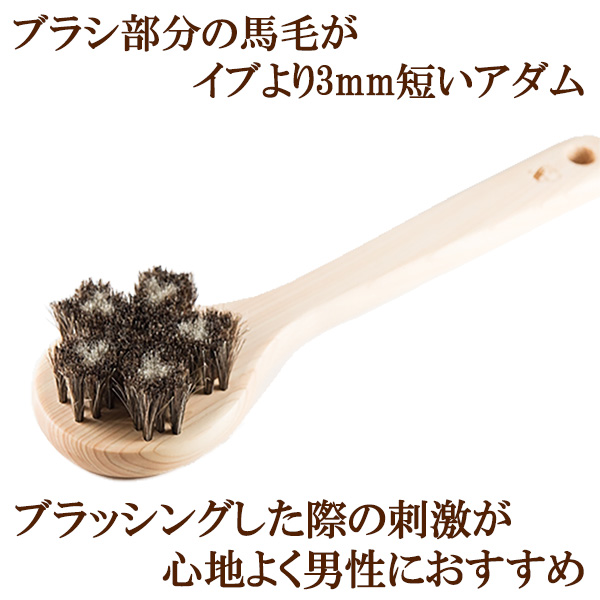 | 商品説明 | 馬毛ボディブラシ・さくら「アダム」+洗顔ブラシのセット。 ボディブラシ「アダム」は刺激が心地よく男性におすすめ。 泡立ち抜群の洗顔ブラシをセットにしてお得な価格でご提供いたします。 お手入れに便利なブラシクリーナー付き。 ブラシ職人が造る馬毛を使用した高品質のブラシ。 |